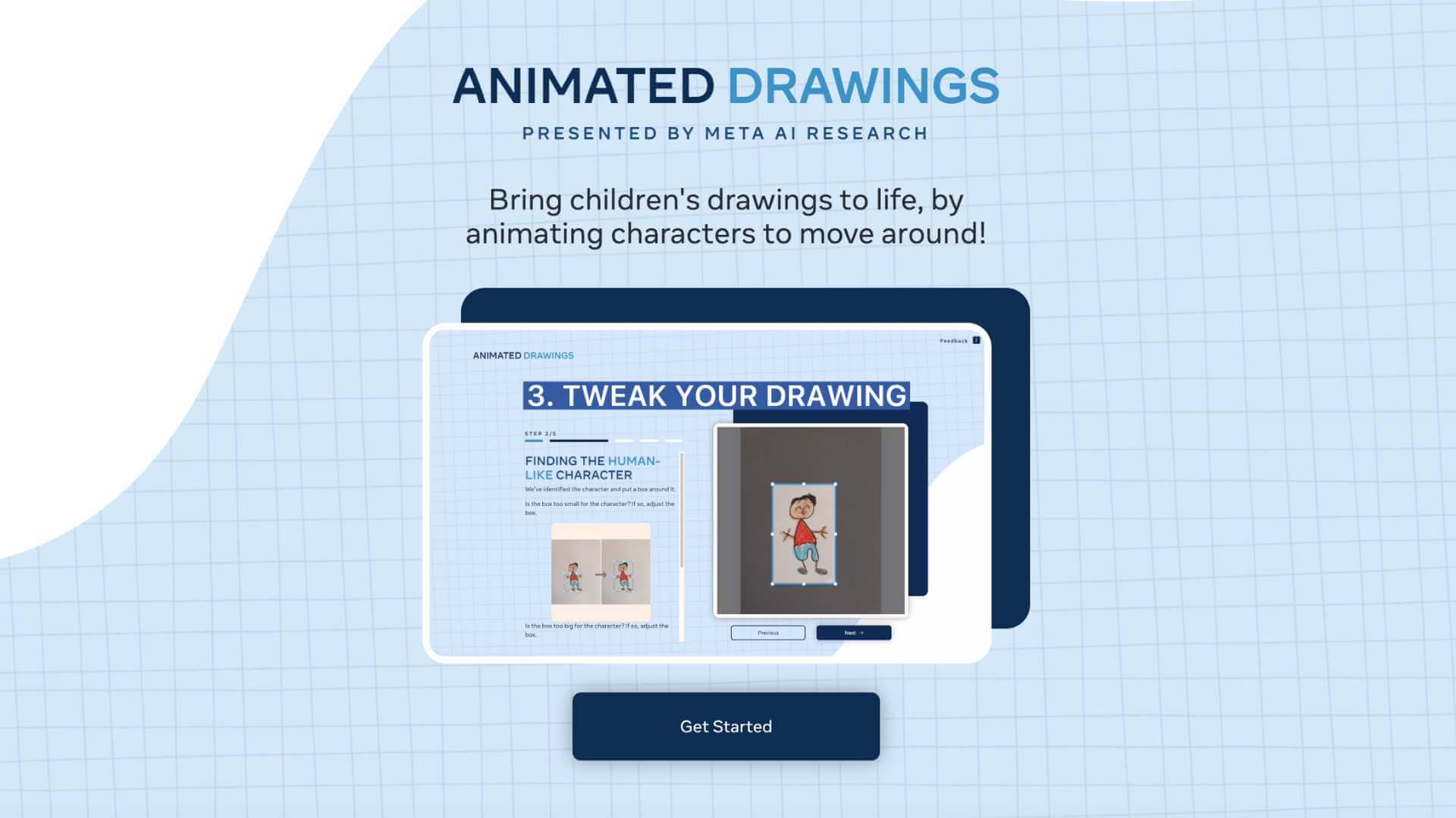 Animated Drawings tool enables users to animate characters in children's drawings, bringing the drawings to life. It uses cookies to enhance the user experience and remember users.