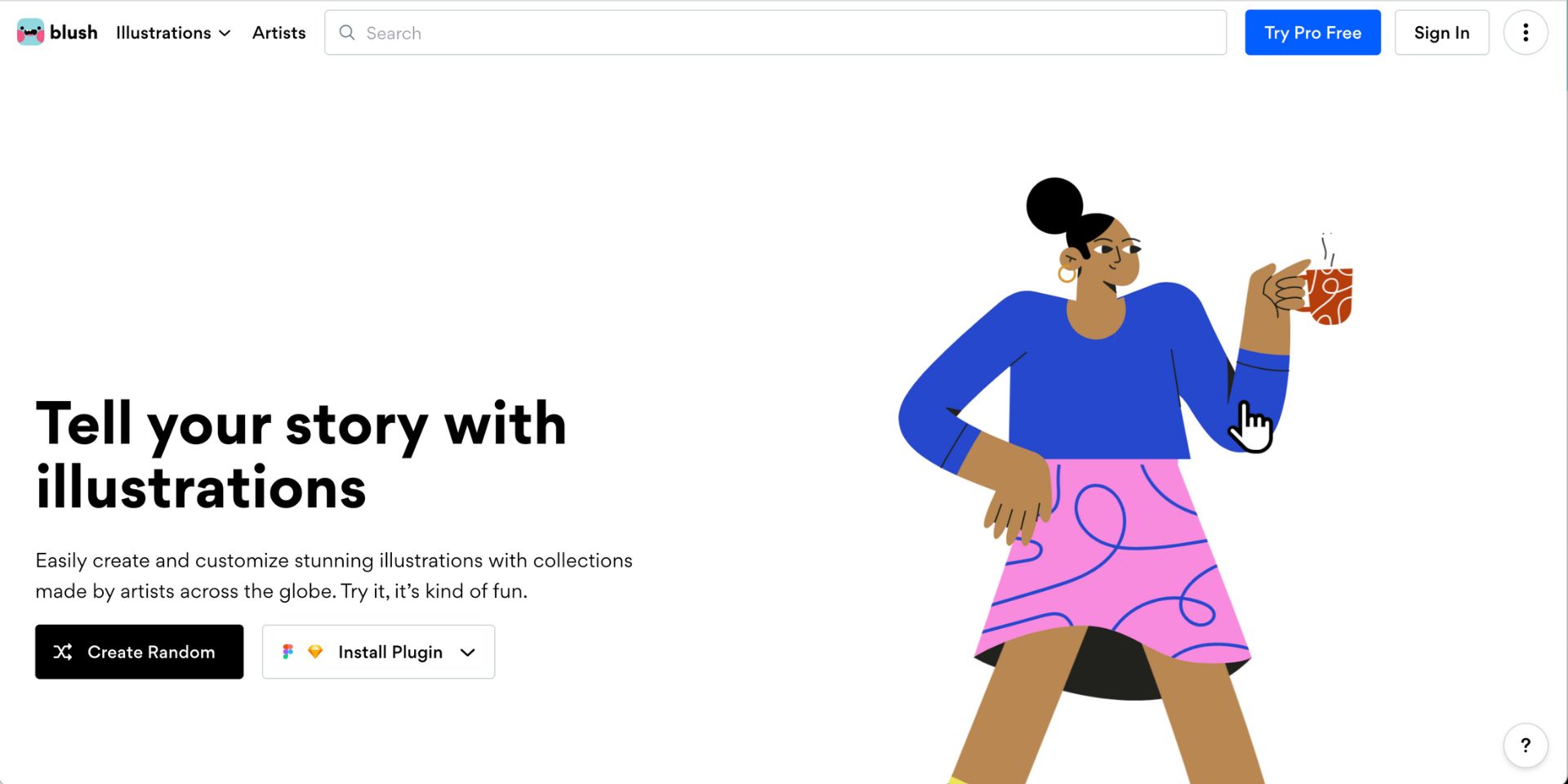 Blush makes it easy to add free illustrations to your designs. Play with fully customizable graphics made by artists across the globe.