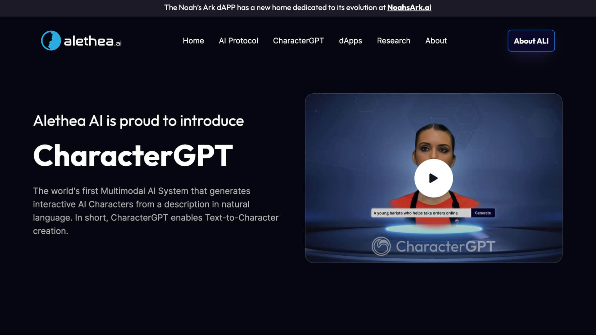 CharacterGPT is a revolutionary artificial intelligence system that enables users to quickly generate interactive characters with distinct appearances, voices, intelligence, personalities and identities by providing a natural language description. CharacterGPT also allows users to customize the character's personality, train its intelligence, trade its generative outputs, and use it across other dApps on the AI Protocol.
