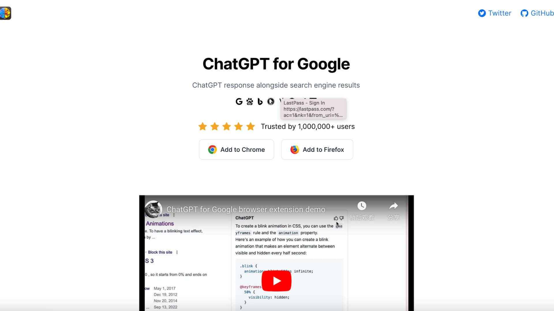 Provides ChatGPT response alongside search engine results. It can be added as an extension to Chrome and Firefox browsers.