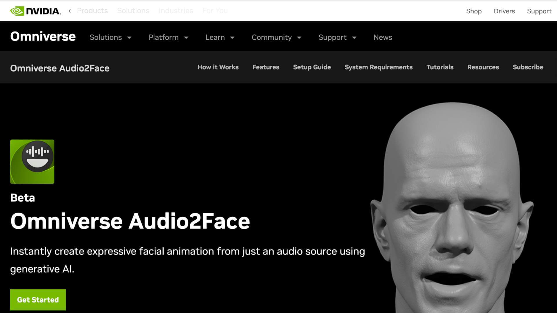 Omniverse Audio2Face is a reference application that simplifies animation of a 3D character to match any voice-over track. It is preloaded with a 3D character model that can be animated with a voice-over track, and the audio input is fed into a pre-trained Deep Neural Network and the output drives the 3D vertices of the character mesh to create the facial animation in real-time. It also has a character transfer feature that allows users to retarget to any 3D human or human-esque face, and allows them to scale the output with multiple characters in the scene and control the emotion of the character with an AI network. It also has data conversion features that allow for blendshape conversion and blendweight export options, and supports export-import with Blendshapes for Blender and Epic Games Unreal Engine to generate motion for characters.