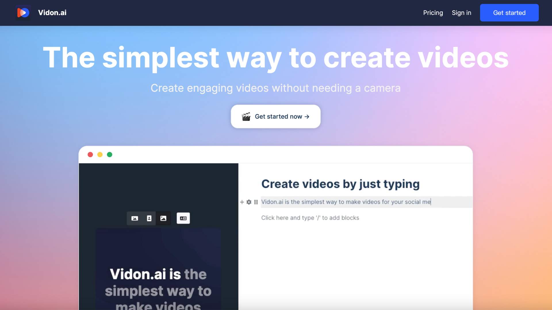 Vidon.ai is a tool that allows users to quickly and easily create engaging video content from their existing blog posts or using AI-generated scripts. It features powerful features such as automatic resizing, one-click translation, AI voiceover, AI video assistant, instant sharing, subtitles and transcription, bulk creation, and a REST API. It is perfect for creating blog post teasers, testimonials, how-to videos and more, and can help users rank higher on Google and stand out on social media.