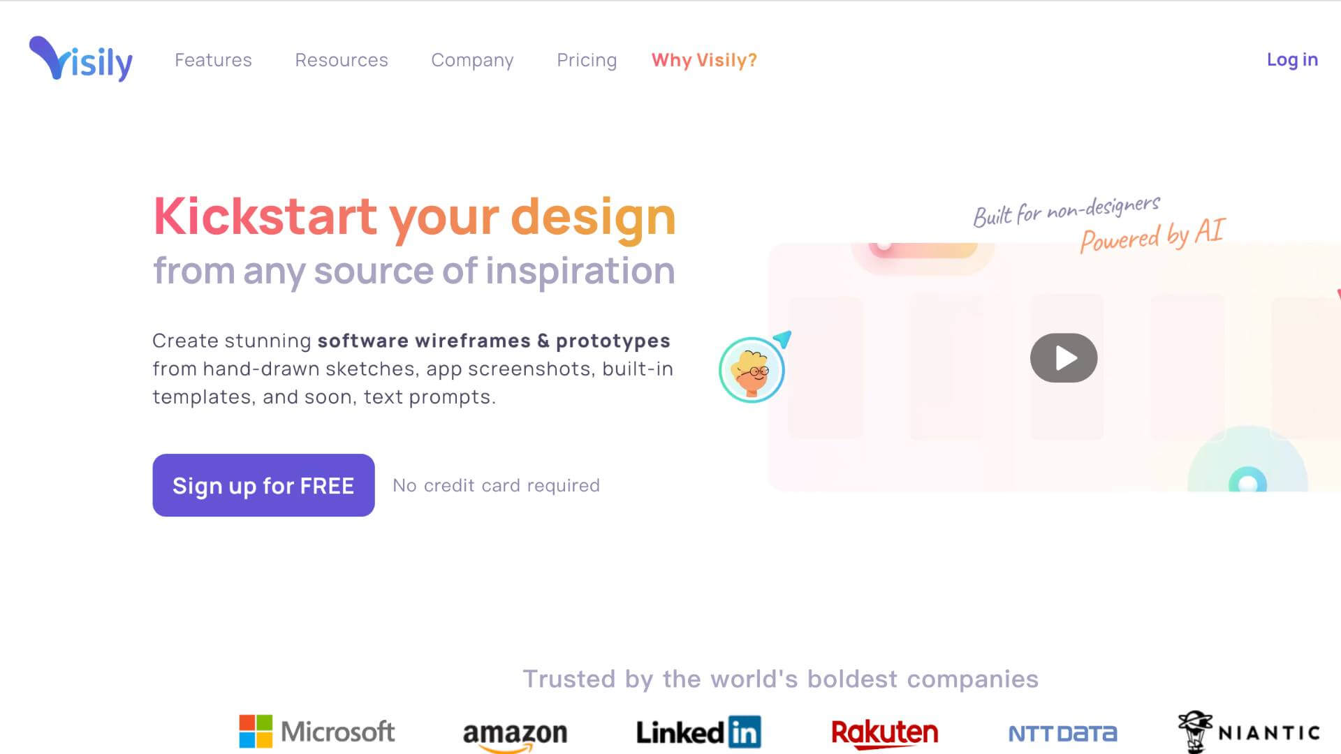 Visily enables teams with diverse design backgrounds to create stunning wireframes and prototypes at light speed. Boasting a wide range of AI-powered features, Visily also has pre-designed templates, prototyping, and collaborative features to make designing an easy & intuitive experience.