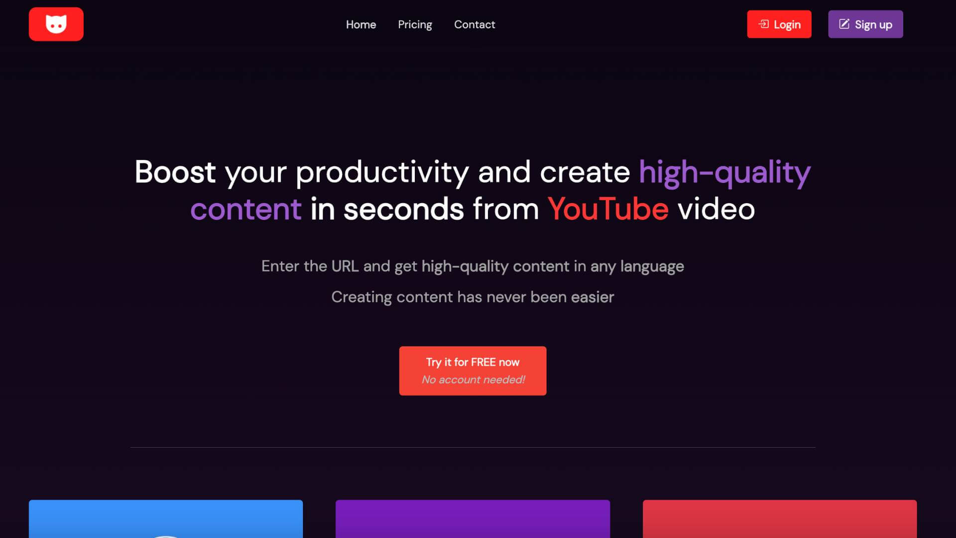 YT Copycat is a tool designed to help people save time while creating quality content. It converts YouTube videos into text content, including automatic video summaries, SEO optimized blog posts, and tweet generation. It also allows users to quickly generate fresh content from new videos. By publishing a large quantity of content, users can increase their traffic and reach a wider audience. The tool is free and easy to use, simply requiring the user to enter the YouTube video URL and letting the tool do the rest.